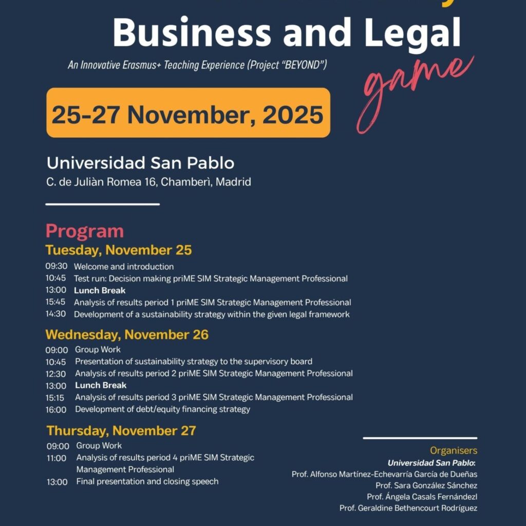 Manifestazione di interesse per partecipare al “Sustainability Business and Legal Game – BEYOND Innovative Teaching Workshop” a Madrid, 25-27 novembre 2025