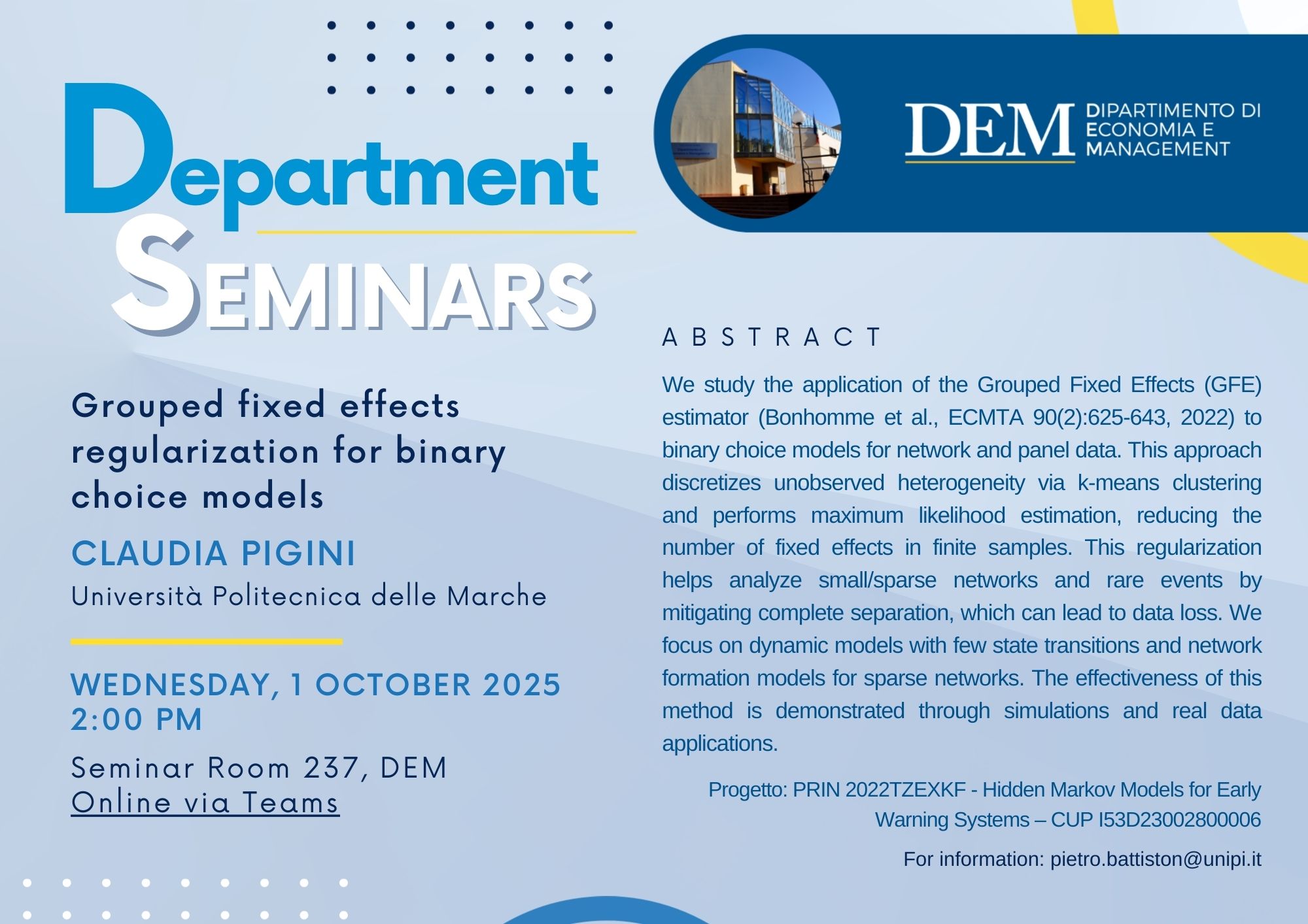 Speaker: Claudia Pigini (Università Politecnica delle Marche)